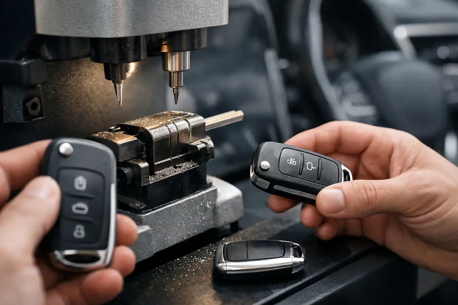 במילים פשוטות, התהליך כולל בדרך כלל שלושה חלקים. הראשון הוא התאמת גוף המפתח או השלט. השני הוא חיתוך להב, אם מדובר במפתח שמשלב גם פתיחה מכנית. השלישי, והחשוב ביותר, הוא קידוד השבב האלקטרוני כך שהרכב יזהה את המפתח כמורשה.